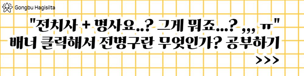 중간에 나왔던 전치사 + 명사 = 전명구= 부사구가 궁금하다면 아래 배너를 클릭해 확인해주세요!