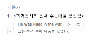 수동태: 어떤 문장의 주어가 그 문장의 동사가 나타내는 행위의 피행위자일 경우를 의미한다.